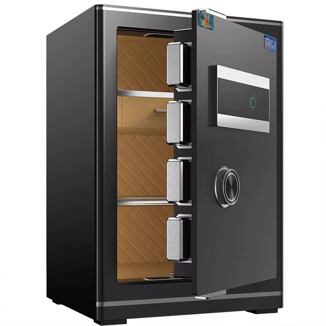 Lock System: Fingerprint + Electronic Keypad + Mechanical Override Keys