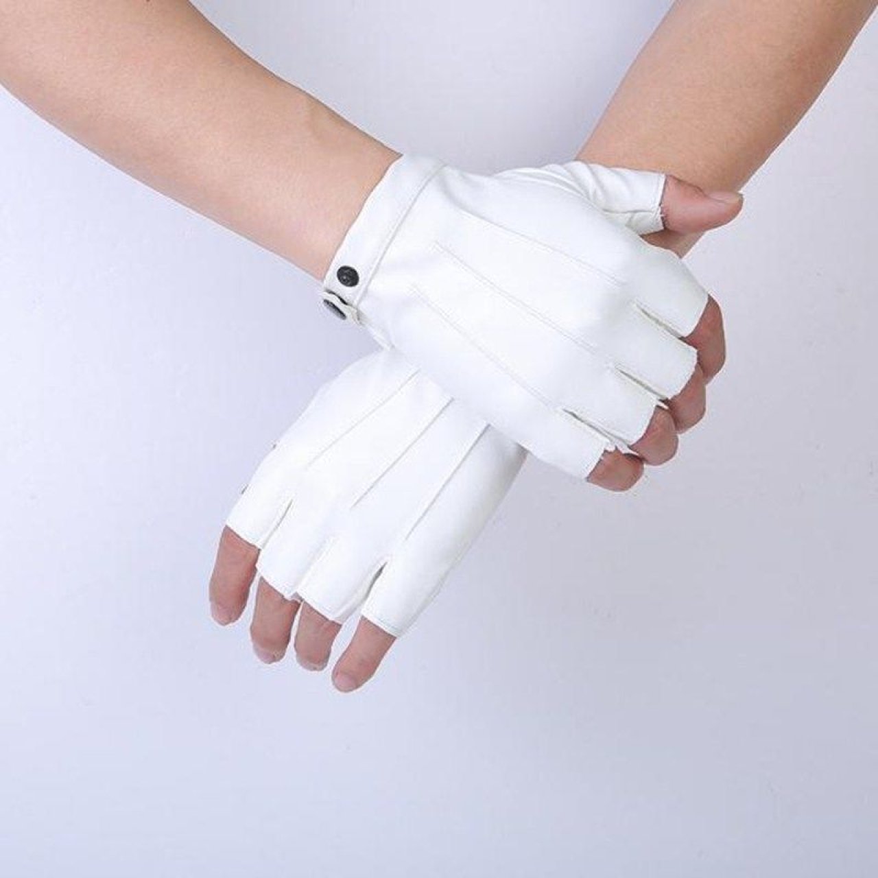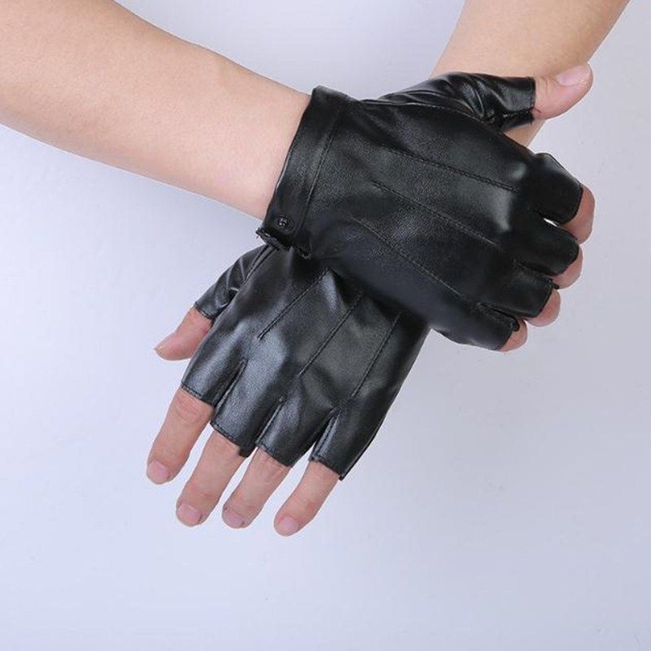 Add a bold edge to your look with these Black Faux Leather Fingerless Gloves, crafted for style and performance. The sleek, glossy finish and open knuckle design make them perfect for dance routines, cosplay, stage acts, or urban fashion statements. Designed for a snug yet comfortable fit, they feature reinforced stitching and a soft interior lining for extended wear. Whether you're channeling a rockstar vibe or completing a costume ensemble, these gloves deliver both flair and function. Lightweight and breathable, they offer flexibility without compromising on attitude.