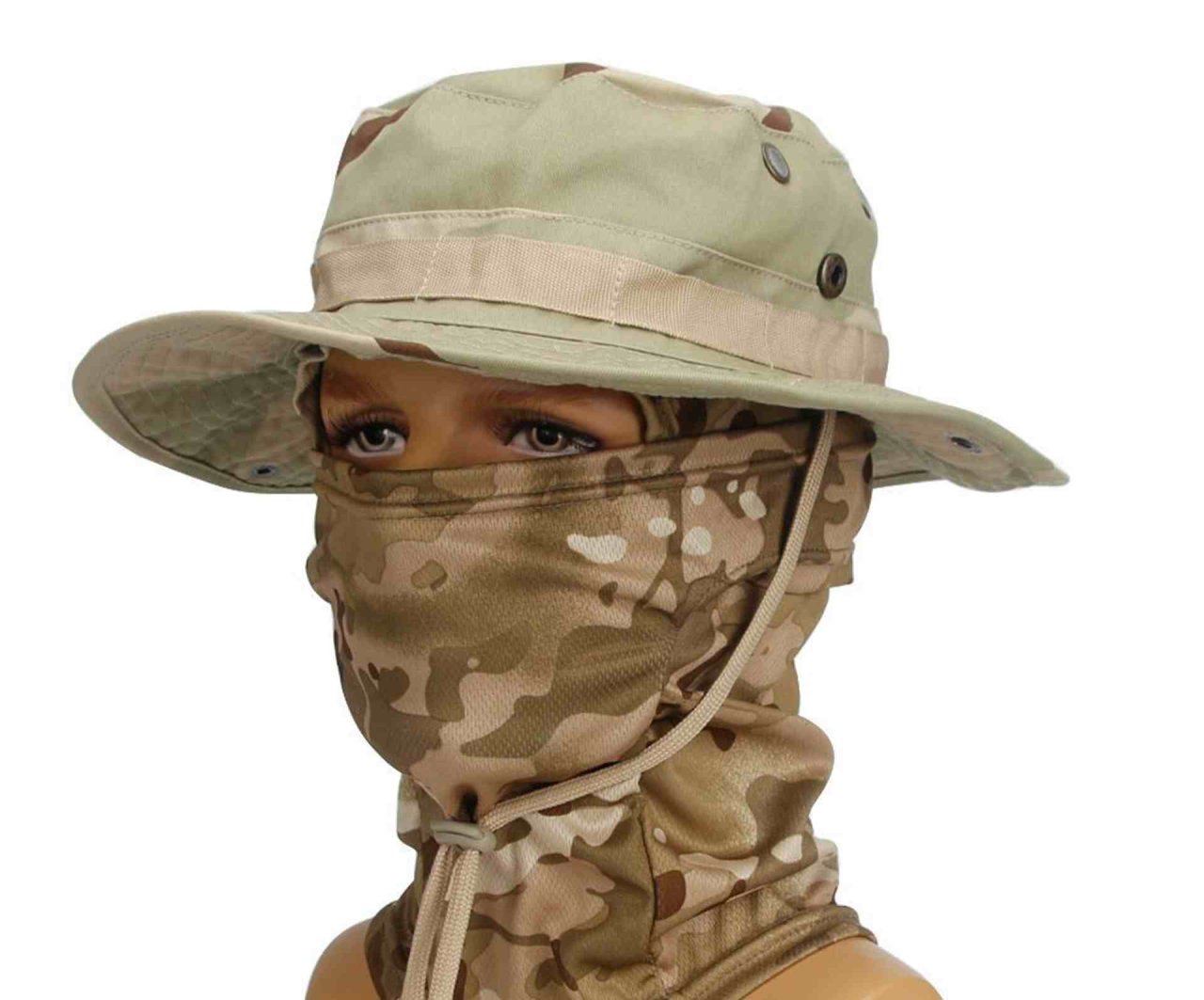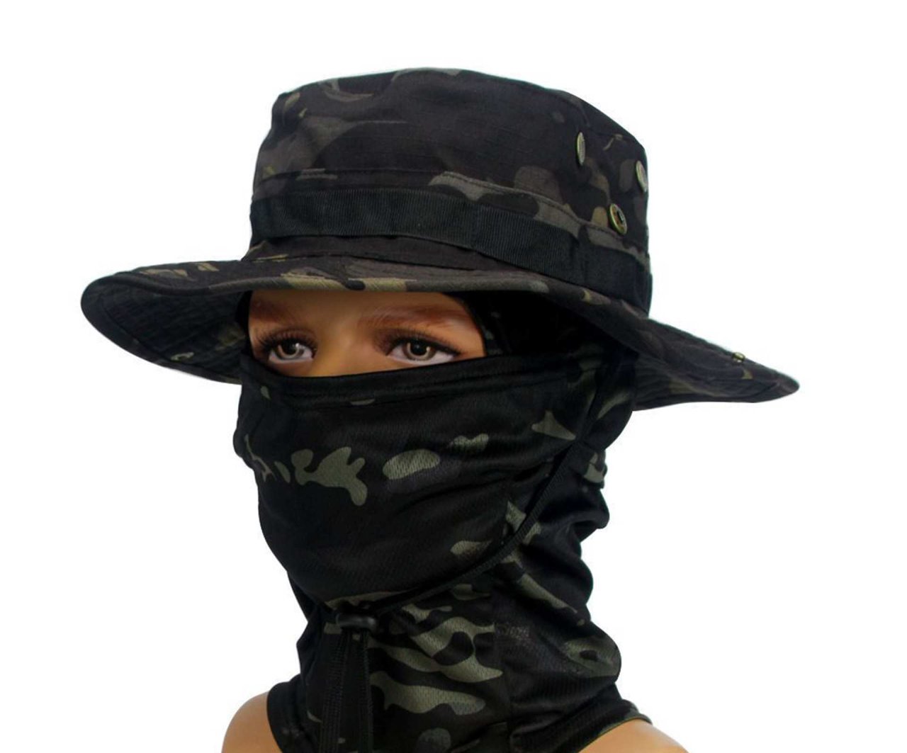 The Camouflage Boonie Hat with Face & Neck Cover is built for outdoor enthusiasts who demand both protection and comfort. Featuring a wide brim, breathable fabric, and ventilation eyelets, it shields you from sun, wind, and dust. The detachable face and neck cover offers full coverage in harsh environments, while the adjustable chin strap ensures a secure fit during active use. Ideal for hiking, hunting, fishing, camping, and tactical applications.