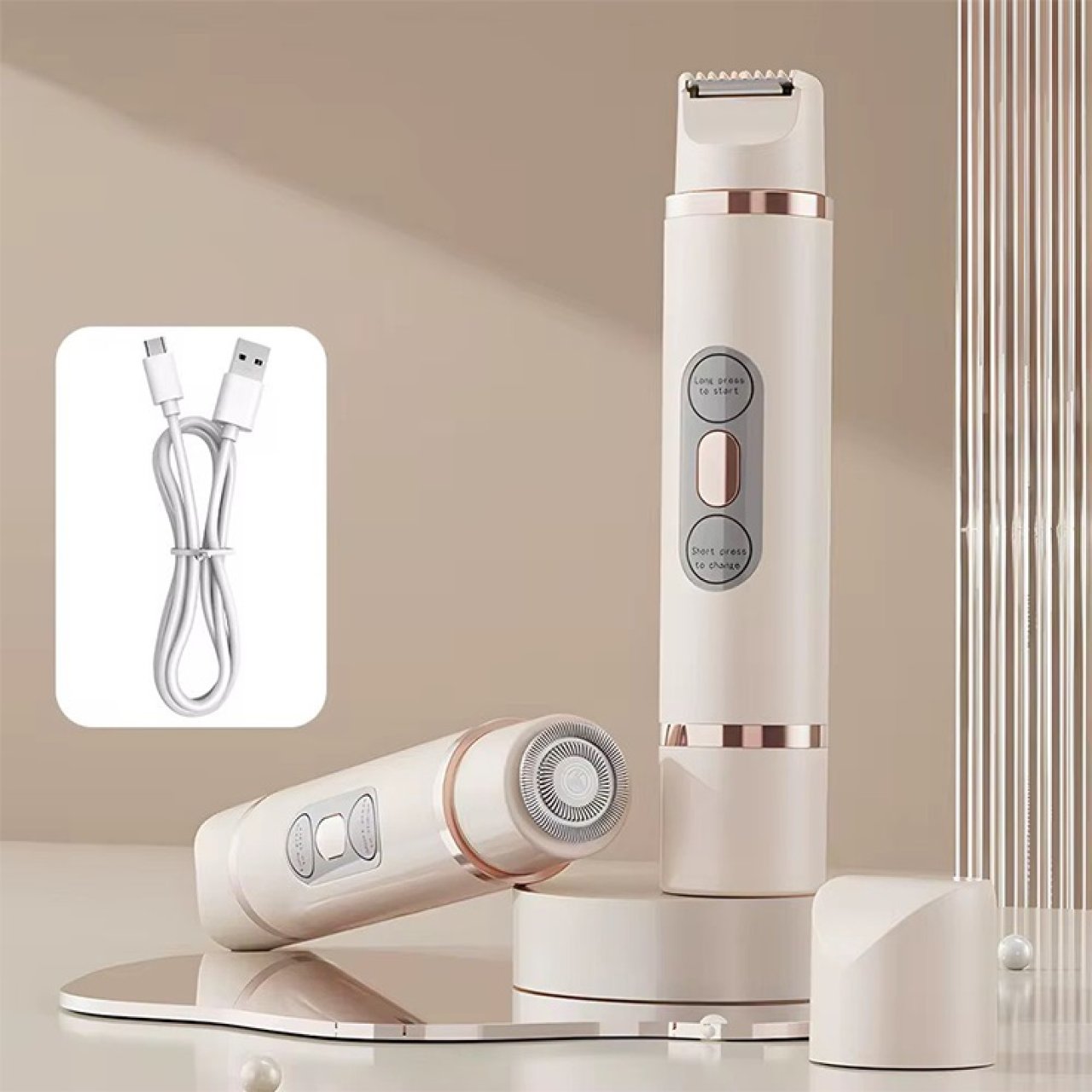 This electric hair trimmer and shaver for women is a compact, dual-function grooming tool designed for precision and convenience. Whether you're trimming facial hair, shaping your bikini line, or grooming body hair, this device delivers smooth results with minimal effort. Its USB rechargeable battery ensures consistent power, while the adjustable settings allow for personalized grooming across different areas.