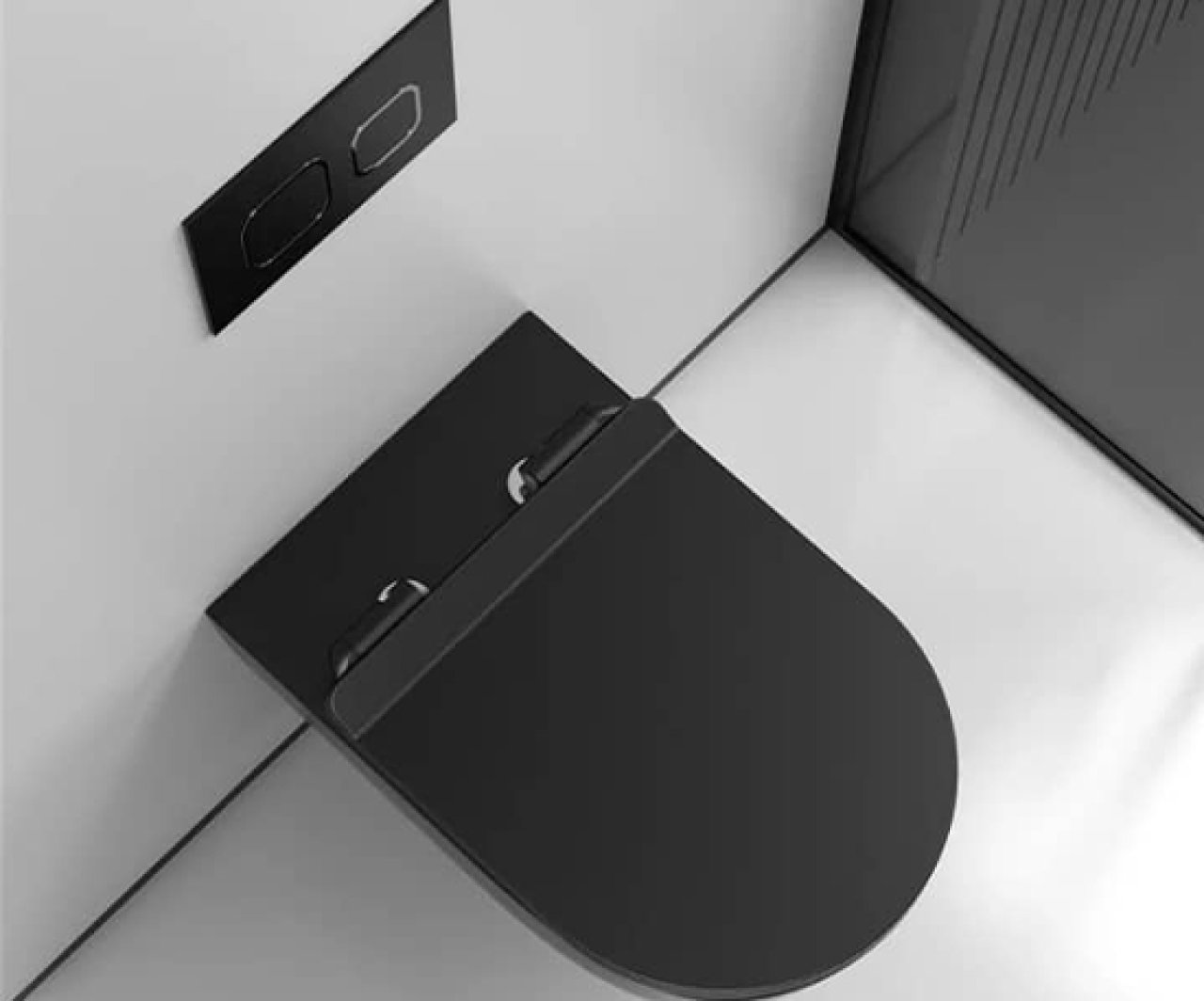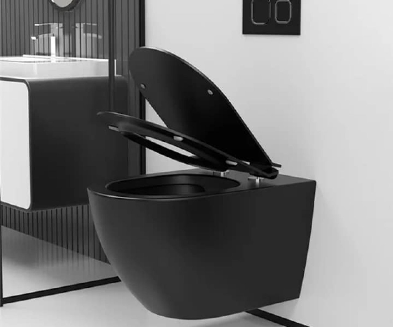 The FIRST PORCELAIN MATT BLACK RIMLESS WALL HUNG TOILET CERAMIC PORCELAIN WALL MOUNTED TOILET FOR BATHROOM is a sleek, space-saving solution for modern bathrooms. Crafted from high-quality ceramic porcelain with a matte black finish, this wall-mounted toilet adds a bold, contemporary touch to any interior.