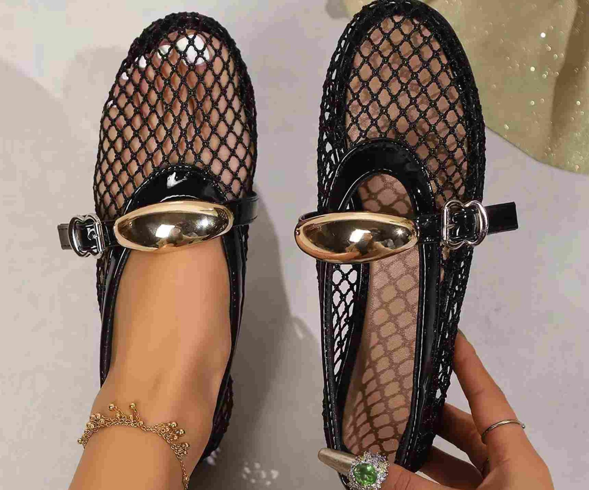 Step into modern elegance with these Mesh Slip-On Sandals, designed for fashion-forward comfort and visual impact. Featuring a netted toe design, solid strap, and metallic oval embellishment, these sandals blend texture and shine for a standout look. Perfect for warm-weather styling, casual outings, or boutique fashion drops.