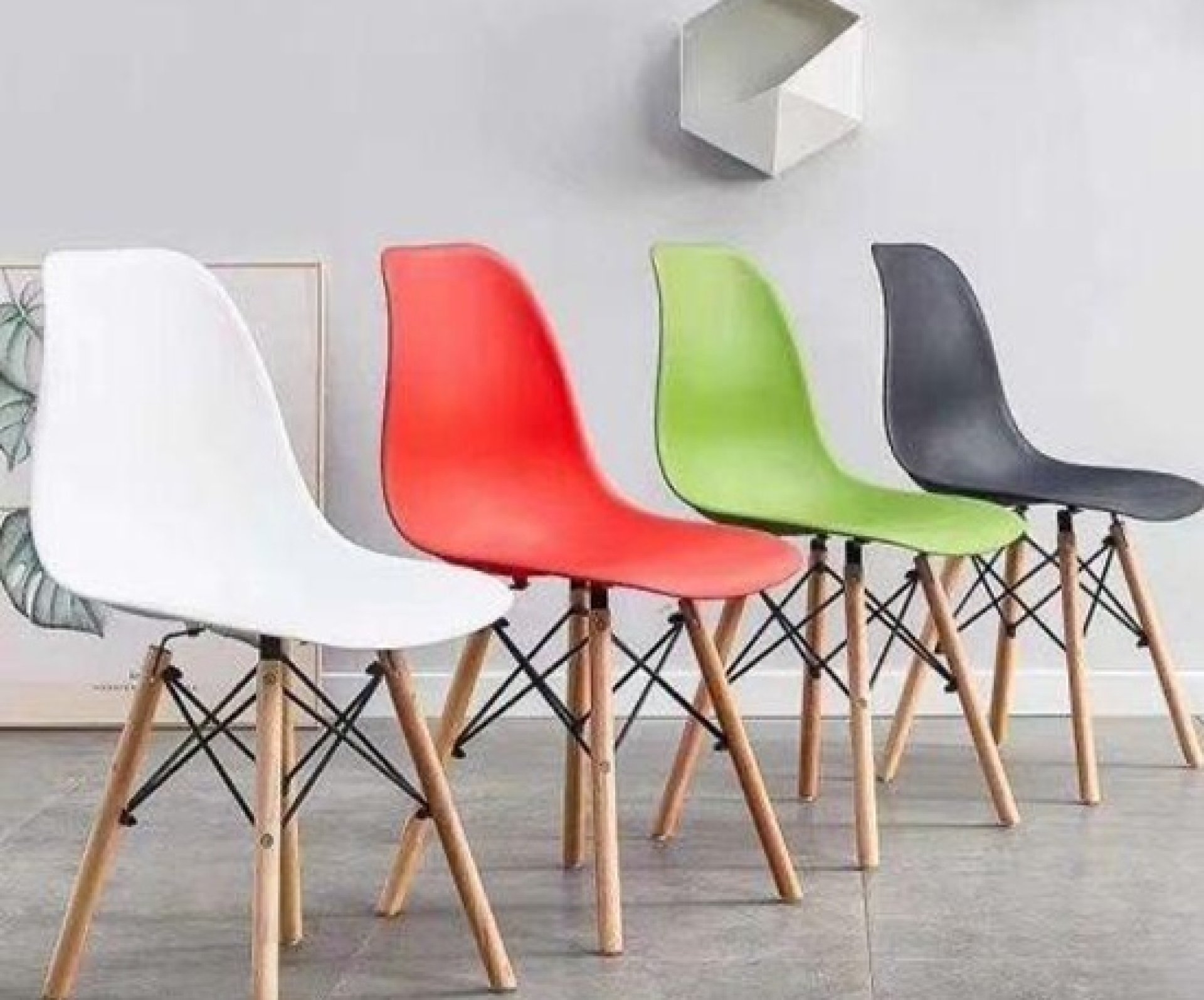 Add a touch of modern elegance to any space with this Set of 4 Molded Plastic Chairs, featuring ergonomic seats in white, red, green, and black. Designed for versatility and comfort, these chairs combine sleek aesthetics with sturdy construction: