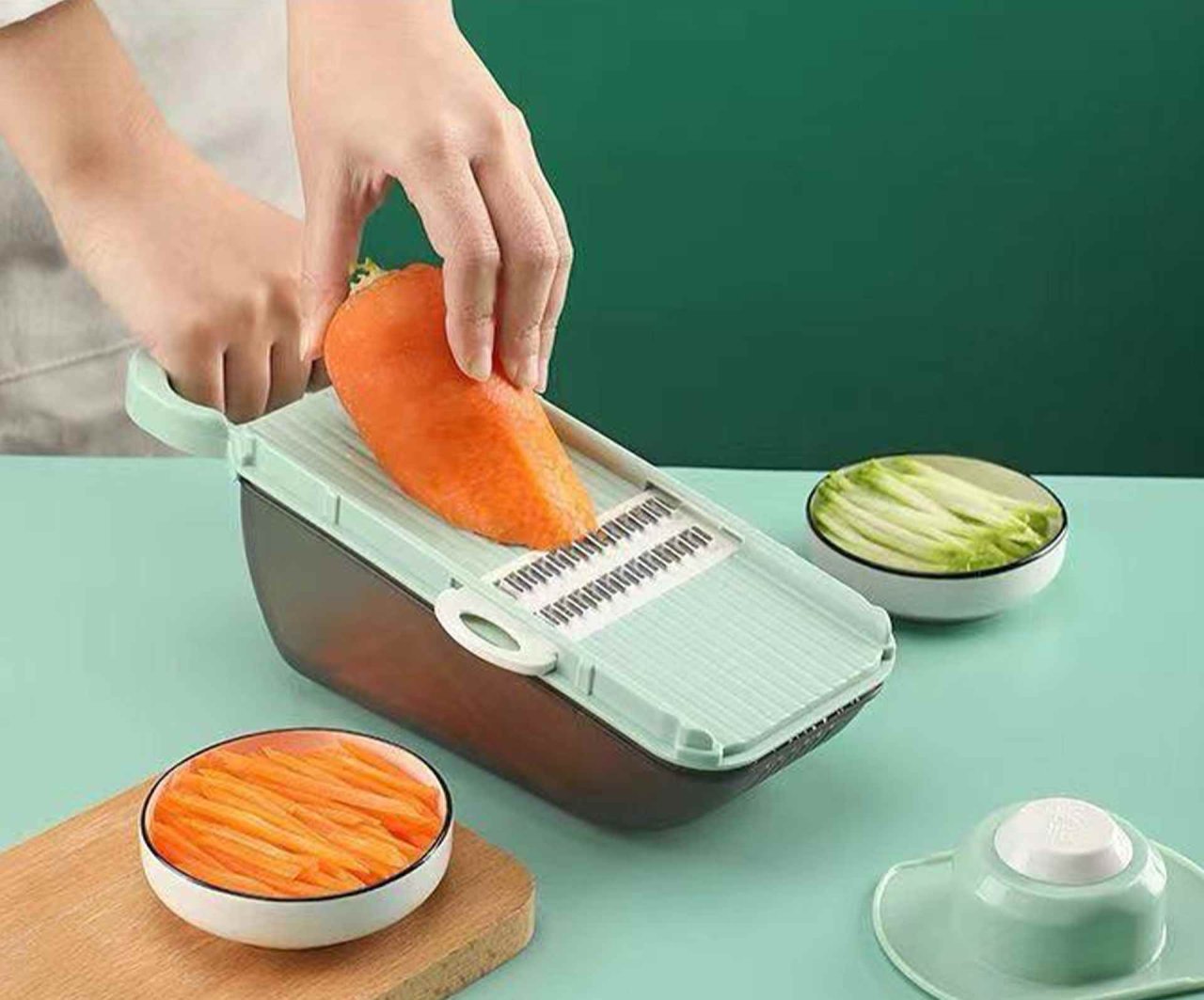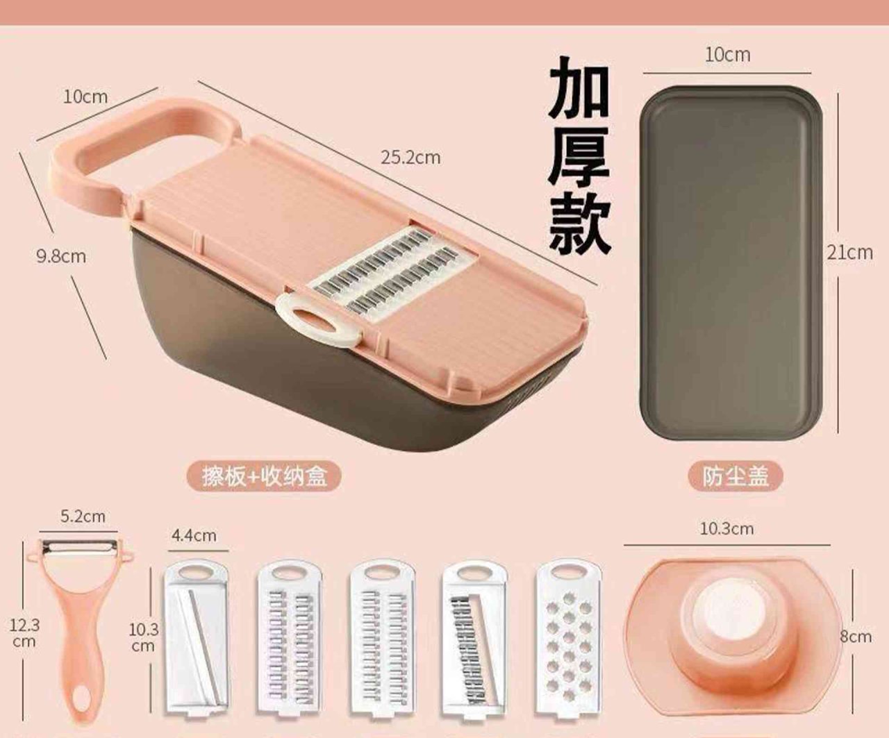 This Multi-Functional Vegetable Slicer & Grater Set combines compact design with culinary versatility. Featuring interchangeable blades, a built-in container, ergonomic hand guard, and bonus peeler, it’s ideal for boutique resale, kitchen starter kits, or cooking-themed bundles. Designed for slicing, grating, julienne cutting, and safe food prep.
