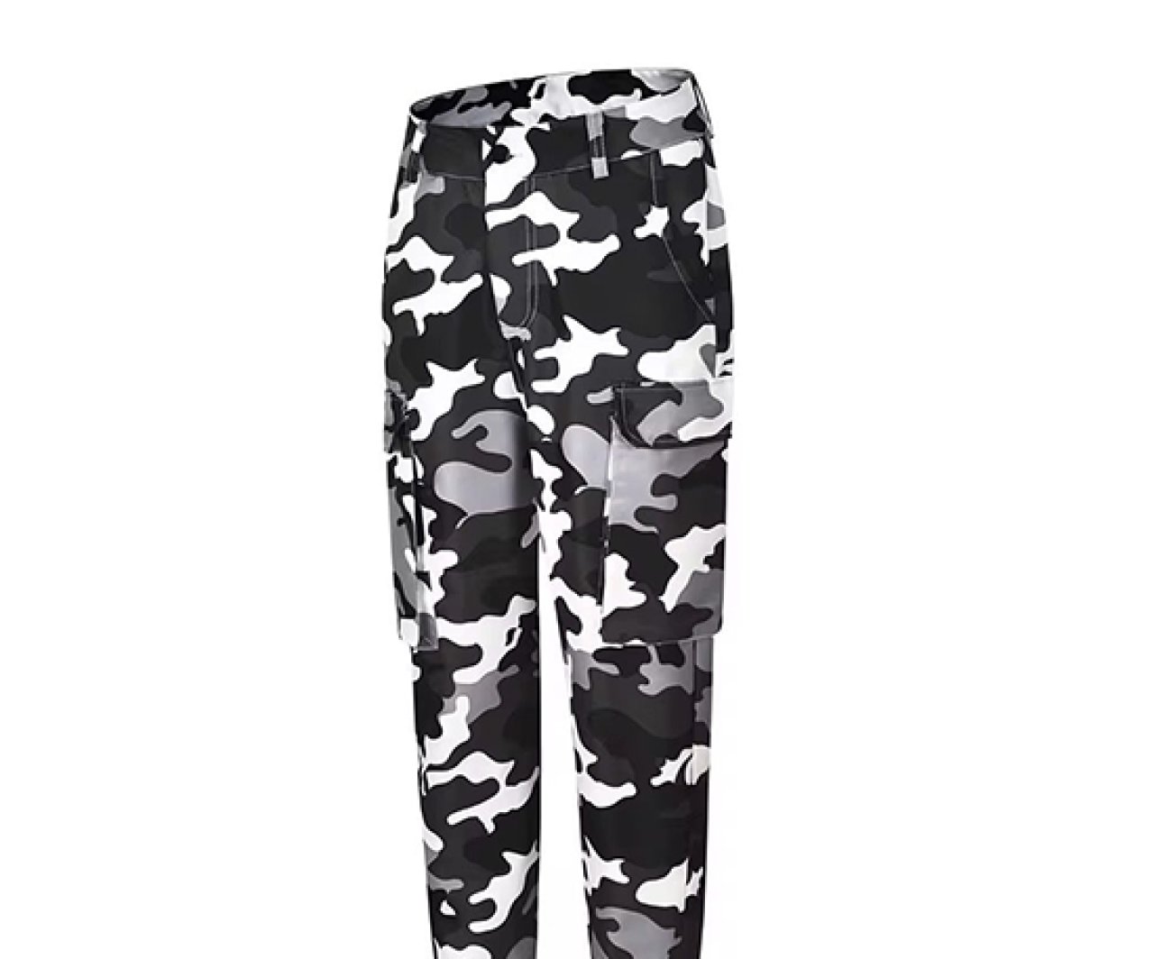 The Multicolor Camouflage Cargo Pants deliver bold visual impact and everyday utility. Designed for the streets, these high-rise unisex trousers feature an abstract camouflage mix of white, black, and deep red tones, giving them a standout aesthetic that complements both minimalist and expressive wardrobes.