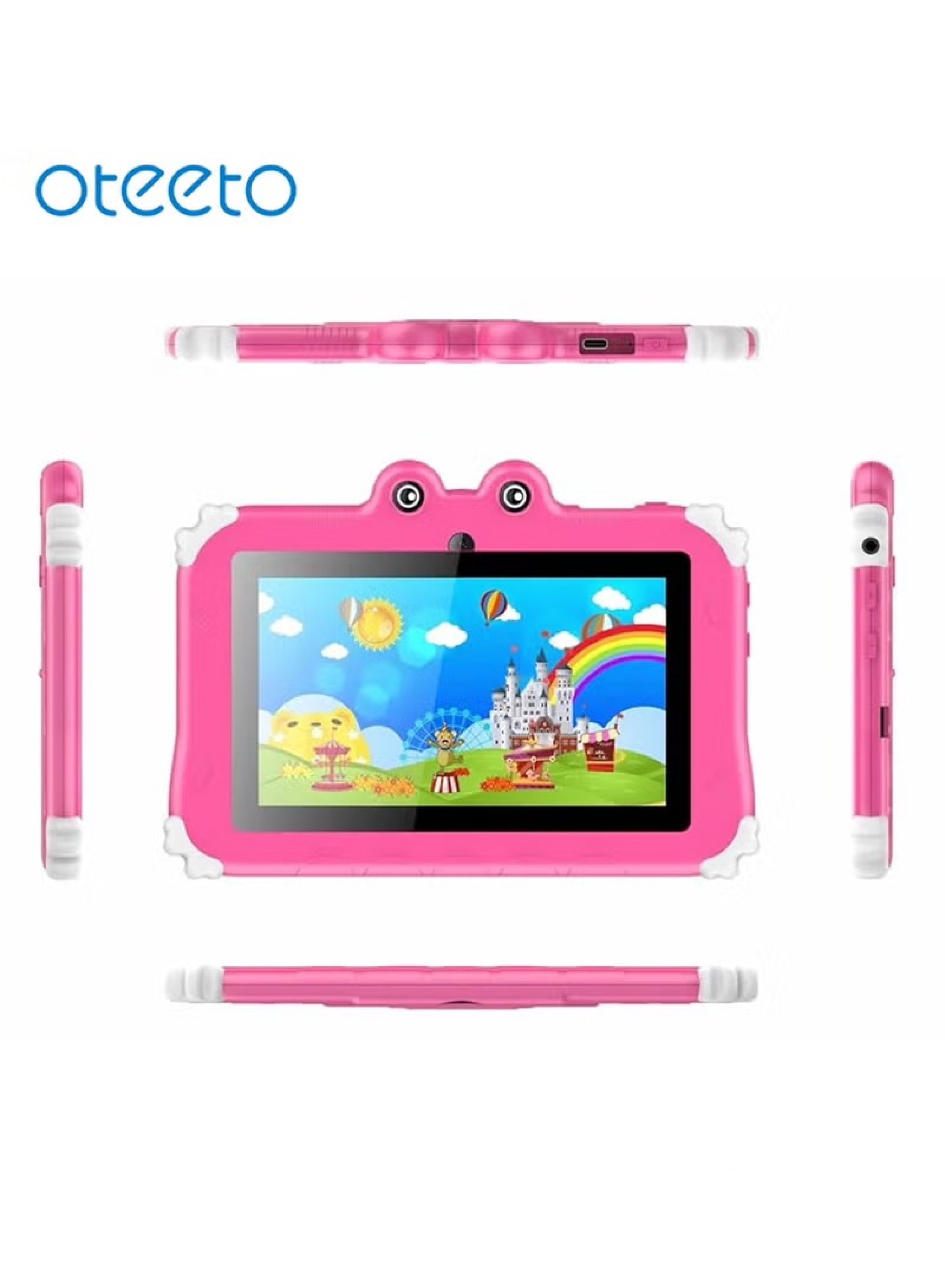The Oteeto Tab 6 is a feature-packed kids’ tablet designed to provide an engaging, educational, and entertaining experience for children of all ages. Built with advanced hardware and a colorful, durable design, it’s the perfect device for kids to explore, learn, and play while staying safe online. With its vibrant 7-inch IPS display and high-definition resolution of 1024x600, this tablet delivers crisp and clear visuals that bring videos, games, and educational apps to life. The upgraded 4GB of RAM ensures smooth performance and multitasking, while the massive 128GB internal storage provides ample space for all your child’s apps, photos, videos, and learning materials. Need more storage? Expand it easily to keep up with your child’s growing needs. The Oteeto Tab 6 is equipped with dual cameras, making it perfect for virtual learning and creative play. The 2.0 MP front camera is ideal for video calls and online classes, while the 5.0 MP rear camera lets kids capture their favorite moments and experiment with photography. Safety and durability are at the heart of this device. Its shockproof design features a lightweight, kid-friendly case that protects against accidental drops and bumps. Available in four vibrant colors – green, pink, blue, and yellow – it’s as fun as it is functional. Powered by Android 13.0, the tablet offers access to the latest apps and games while providing enhanced security features. With 5G Wi-Fi connectivity, your child can enjoy seamless browsing, streaming, and downloading at lightning-fast speeds. The tablet also includes robust parental control settings, allowing you to customize content and limit screen time to suit your child’s needs. The 3500mAh battery ensures long-lasting performance, keeping your child entertained and engaged for hours without frequent recharging. Whether they’re learning new skills, playing interactive games, or watching their favorite shows, this tablet is built to keep up with their energy. To make the experience even more enjoyable, the Oteeto Tab 6 comes with free bonus items inside the box. These include a charger, a Type-C cable for fast charging, kids’ stickers for customization, a colorful bracelet for fun, and a screen protector for added durability. Whether it’s for learning, playing, or connecting with loved ones, the Oteeto Tab 6 is the ultimate companion for your child’s digital journey. It combines performance, safety, and fun in one colorful, kid-friendly package.