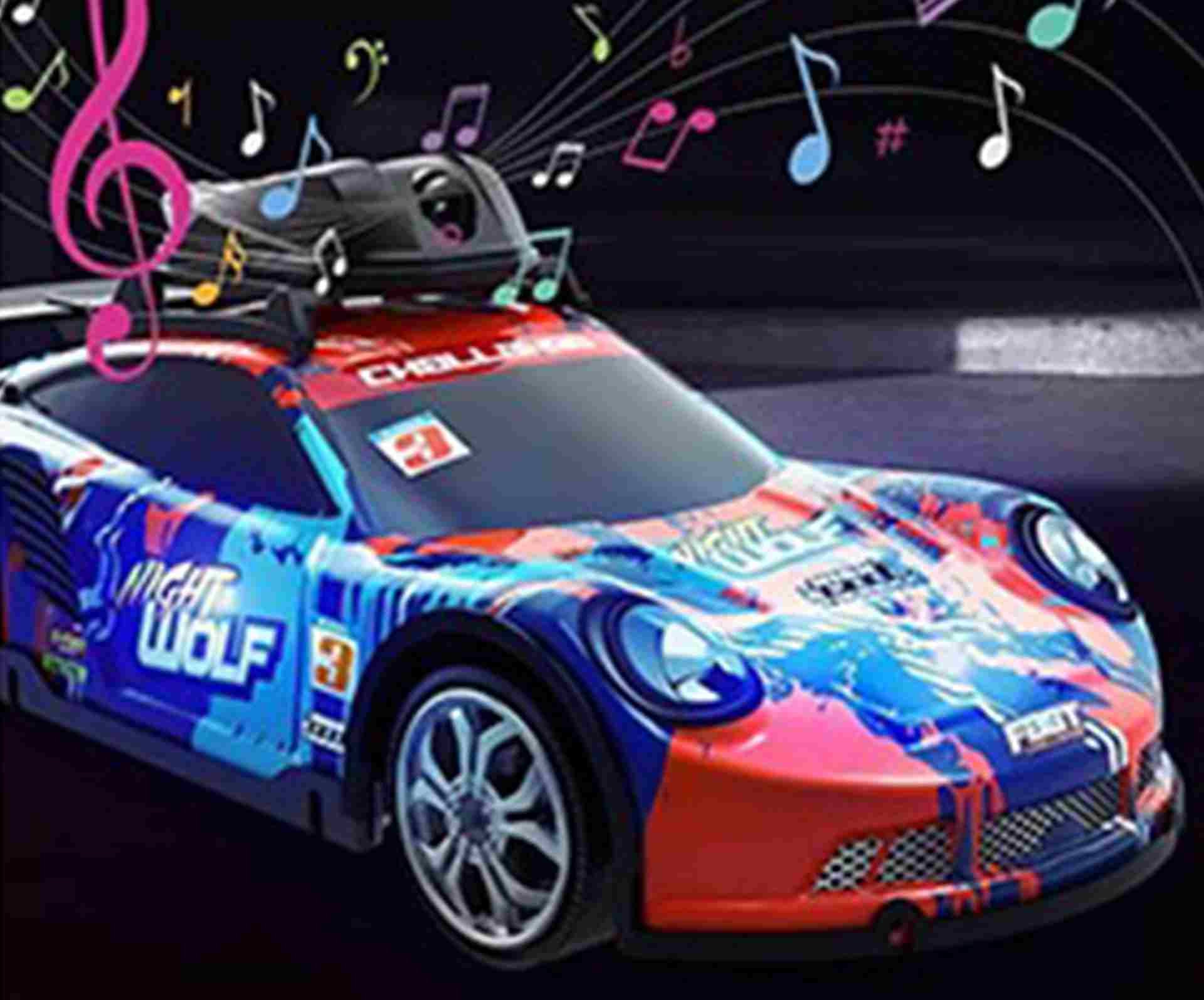 Sporty Design Vivid decals, aerodynamic curves, and bold branding like “WOLF” and “RED STYLE” give this car a fierce, high-performance look.