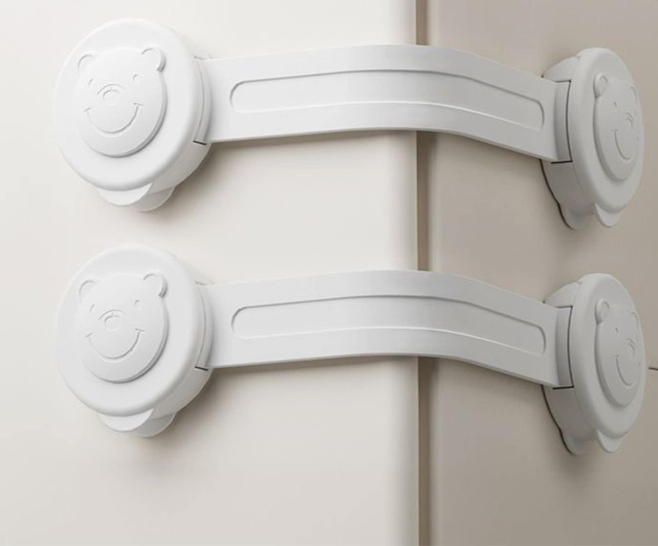 The Child Safety Cabinet Lock is a simple yet effective solution for babyproofing your home. Designed to prevent toddlers from opening cabinets, drawers, and appliances, this lock features a flexible strap with adhesive-backed ends and a playful bear motif. It installs in seconds without tools and blends seamlessly into household furniture.