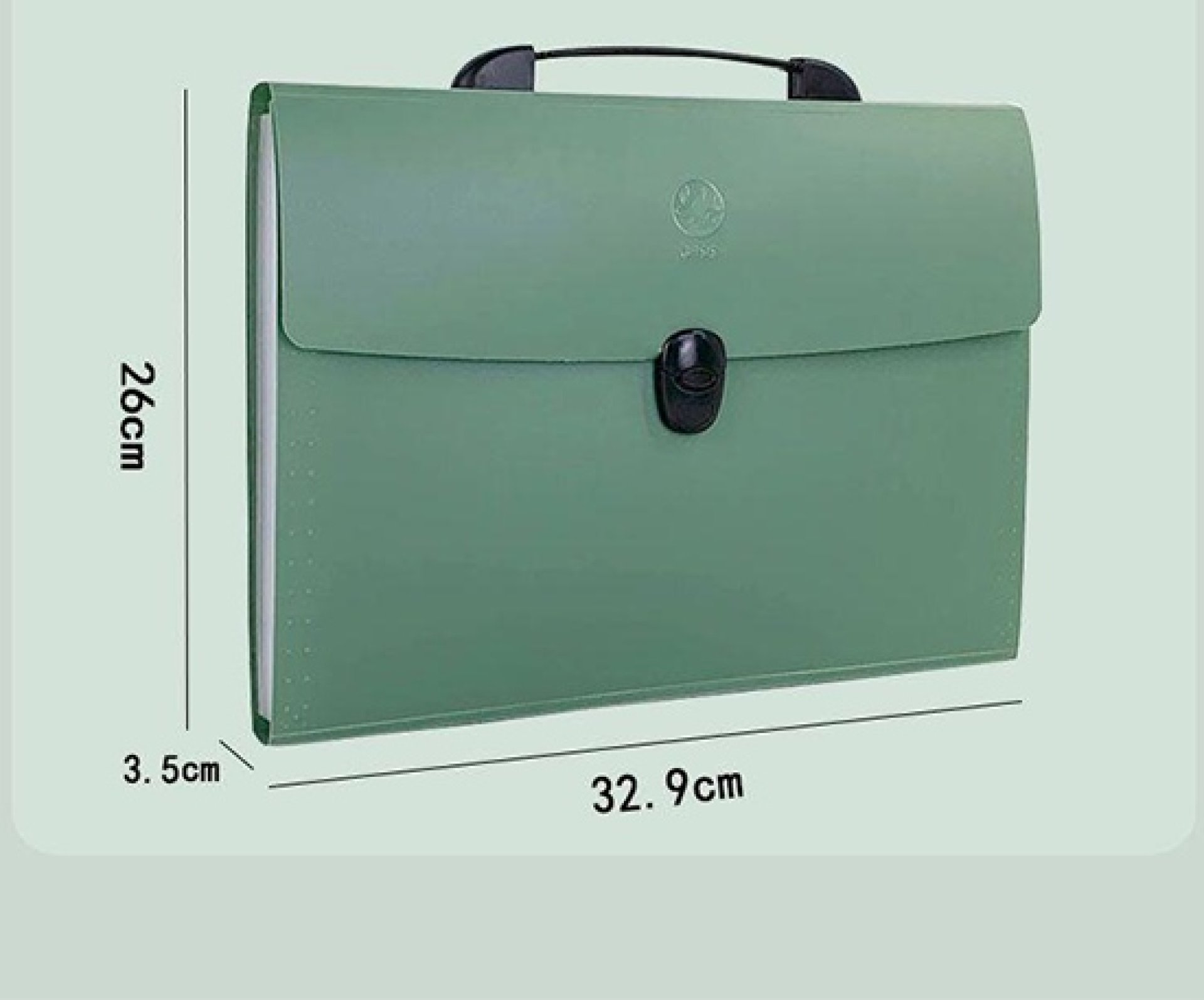 Design & Structure: A translucent green outer shell is paired with a solid fold-over flap featuring a secure snap closure. The integrated handle allows easy mobility across offices, classrooms, or meetings. With a reinforced bottom and side profile, this folder holds up to 300 sheets without bending.