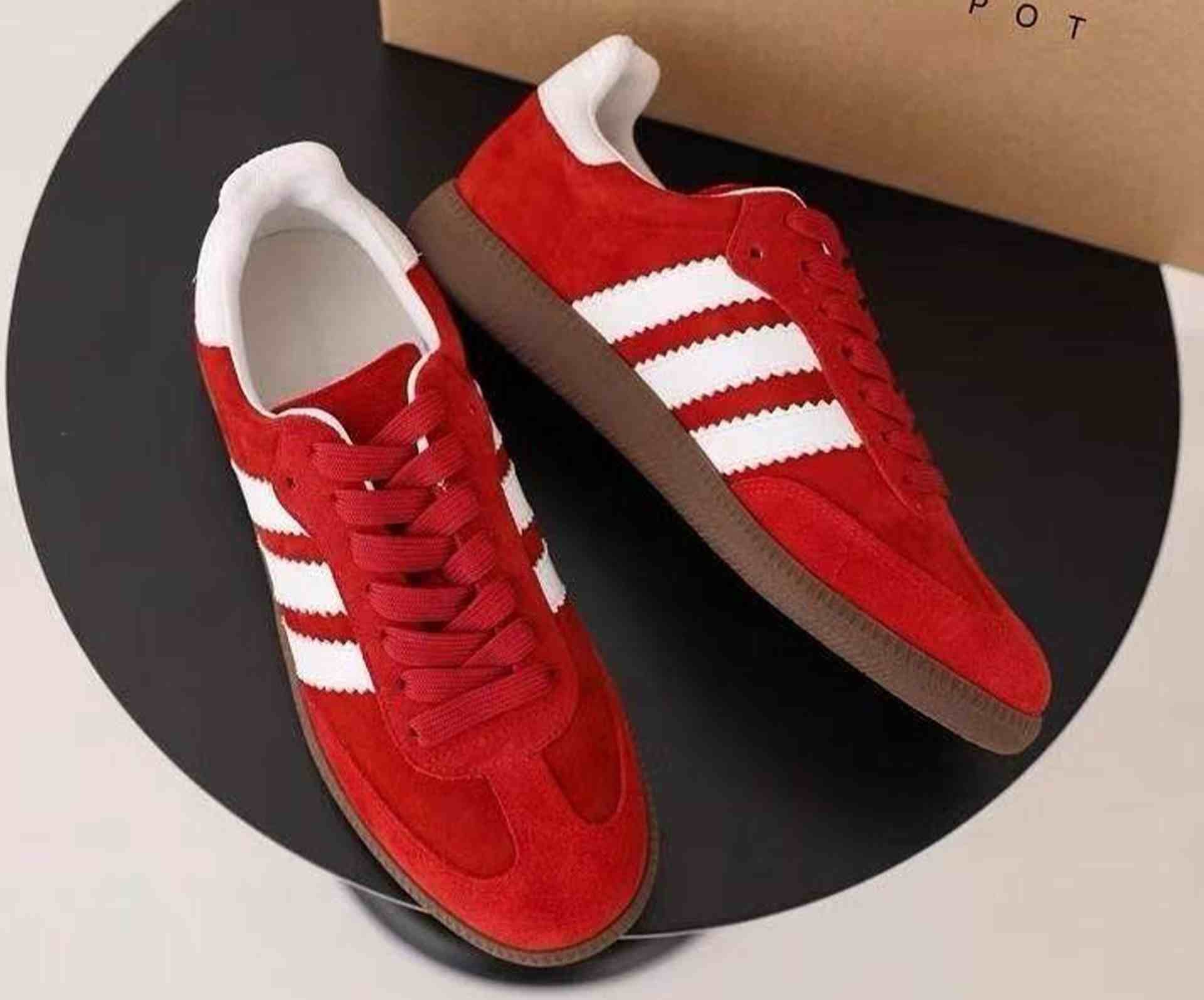 Channel timeless style with these Vintage Suede Sneakers, crafted for comfort and retro flair. Featuring a red suede upper, white side stripes, and a brown rubber sole, this design nods to classic athletic footwear with a modern twist. Perfect for casual wear, boutique resale, or nostalgic fashion campaigns.