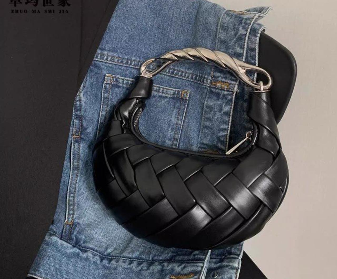 Elevate your accessory game with this Woven Leather Crescent Handbag, a fusion of sculptural elegance and artisan craftsmanship. Featuring a crescent silhouette and intricately woven leather strips, this piece is designed for those who appreciate texture, form, and fashion-forward detail. The sculptural handle adds a refined touch, making it perfect for both everyday wear and standout styling.