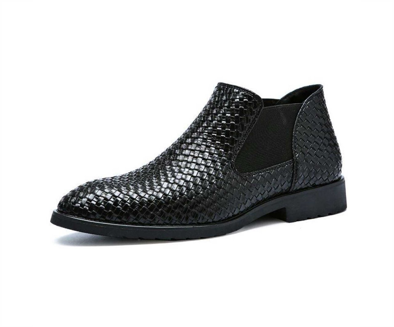 Step into refined style with this Woven Leather Slip-On Dress Shoe, crafted for men who value elegance and comfort. Featuring a textured woven design and elastic side panels for easy wear, this shoe blends classic craftsmanship with modern convenience. Ideal for formal occasions, business settings, or upscale casual looks.